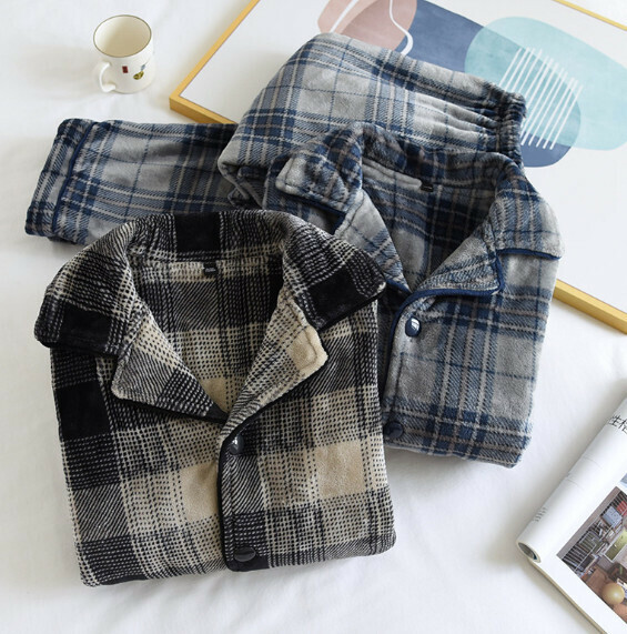 激抵秋冬季加厚法蘭絨睡衣(HLL男款米黑格子)【M-XL碼】【下單後聯絡客服確認發貨尺碼】