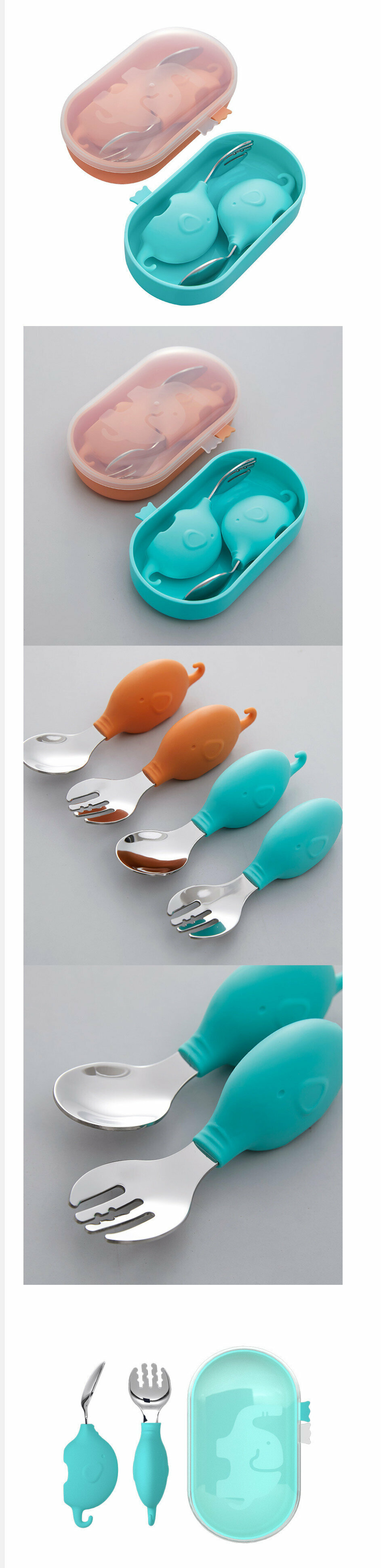 熱賣嬰兒不銹鋼學習餐具套裝 - 橙色 兒童餐具 | 訓練餐具 | 連收納盒 | 外出餐具 | 便攜餐具