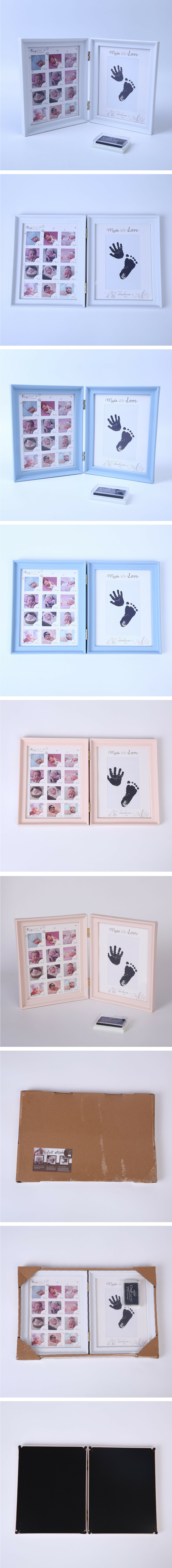 爆款嬰兒滿月手腳印泥紀念相框擺臺【藍色框+印油 36*23】