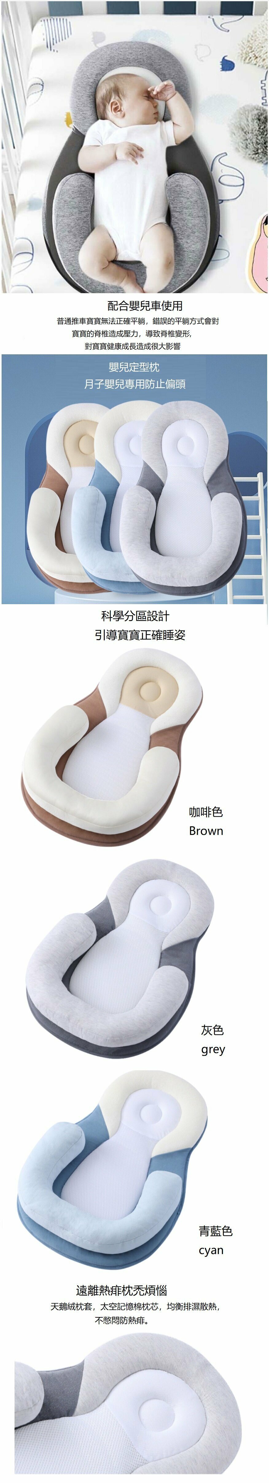 爆款嬰兒定型枕 (灰白色) (尺寸:56*37*2cm)