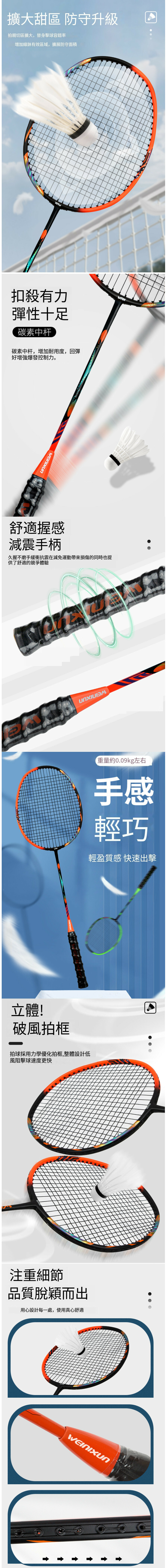 熱推羽毛球拍成人訓練套裝(黑橙色拍+3球)