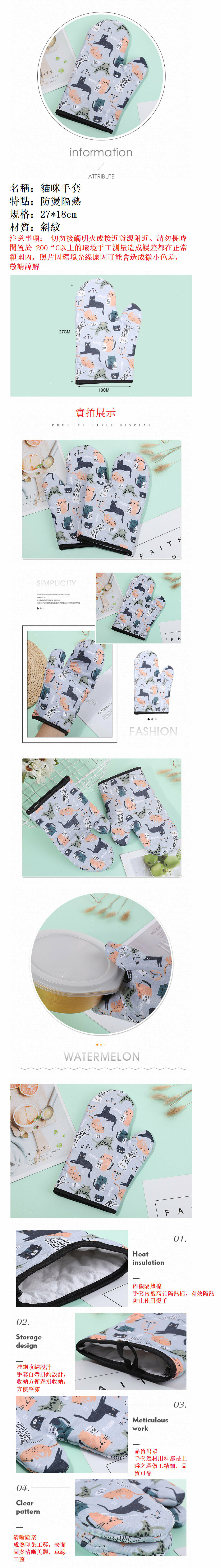 熱推烘焙隔熱手套 焗爐烘焙手套 微波爐手套 -【單隻】【顏色藍色貓咪】
