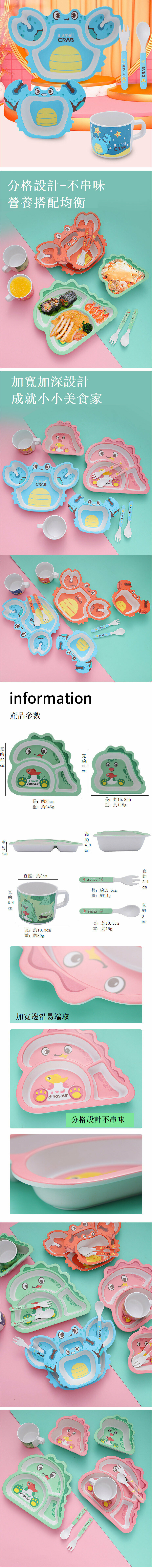 新款竹纖維寶寶餐盤兒童餐具套裝嬰兒輔食碗餐盤(恐龍 粉色)