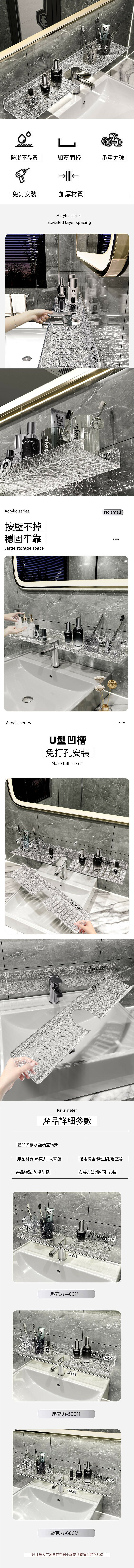 爆款衛生間水龍頭壁掛免打孔置物架【透明水波紋+中號50cm】