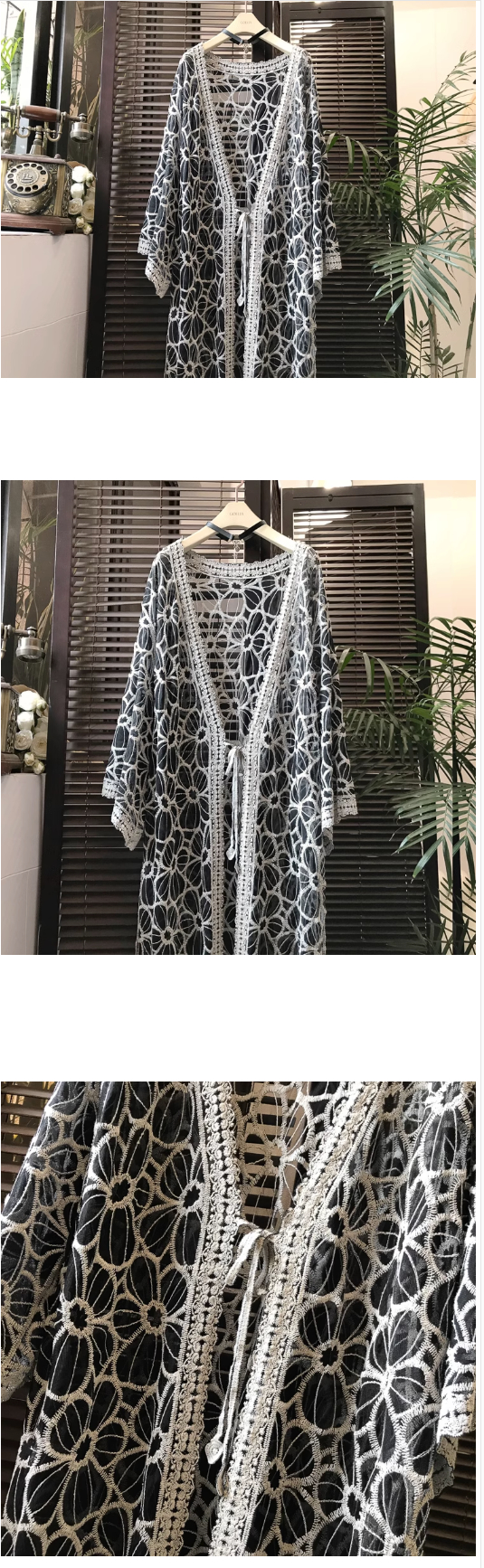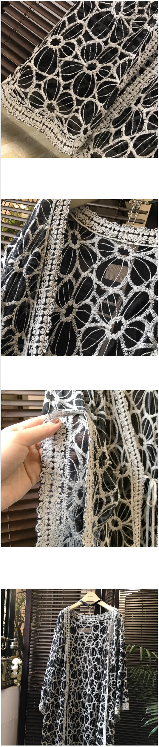 熱推沙灘披肩防曬衣白色刺繡鏤空蕾絲開衫外搭(白色)(均碼)