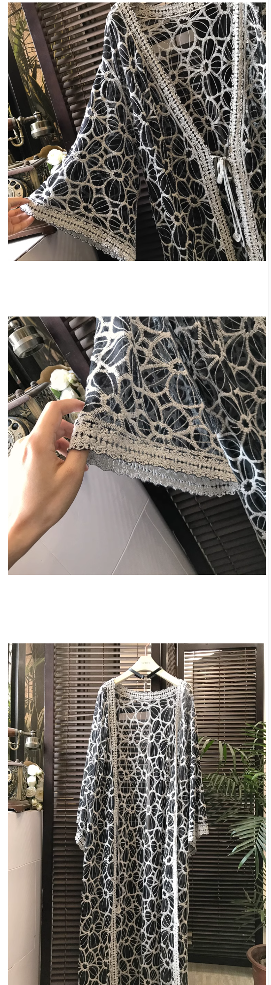 熱推沙灘披肩防曬衣白色刺繡鏤空蕾絲開衫外搭(黑色)(均碼)