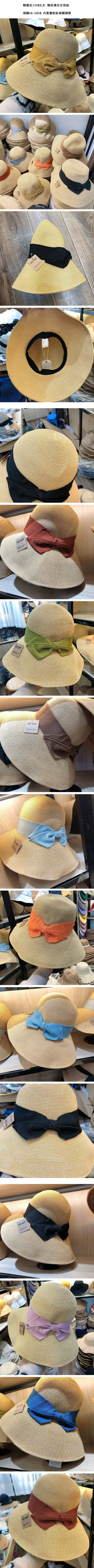 爆款沙灘遮陽大檐帽蝴蝶結漁夫草帽【淺灰藍】【M(56-58cm)】