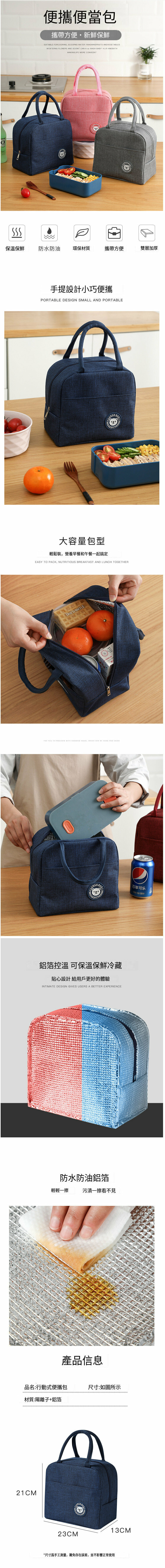 爆款小熊防水手提保溫包隔熱飯盒袋保溫袋便當包加厚帶飯包飯袋【藏青】