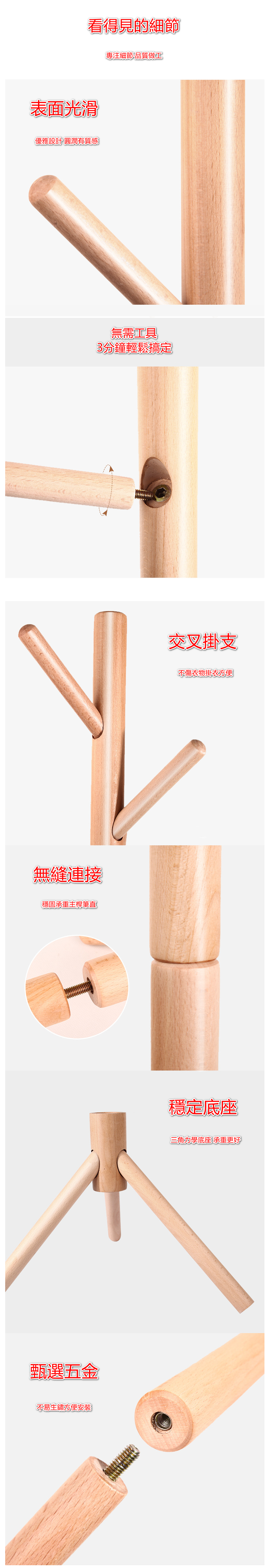 激抵櫸木全實木衣帽架 三腳支撐底掛衫架 8支錯落樹杈 -【 原木色174cm】