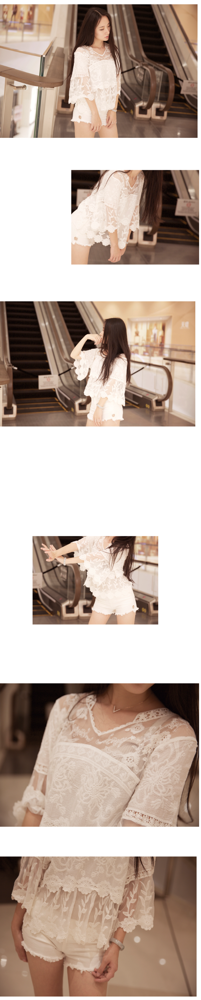 新款喇叭袖上衣娃娃衫外搭(白色)(均碼)(建議體重90-130磅)