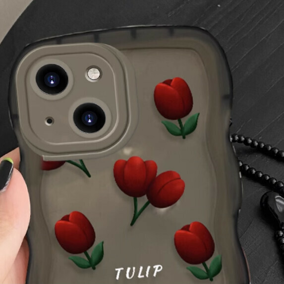 熱賣透黑波浪邊郁金香適用於OPPO_realme手機殼(三朵郁金香【單殼】(下單後聯絡客服確認手機型號)