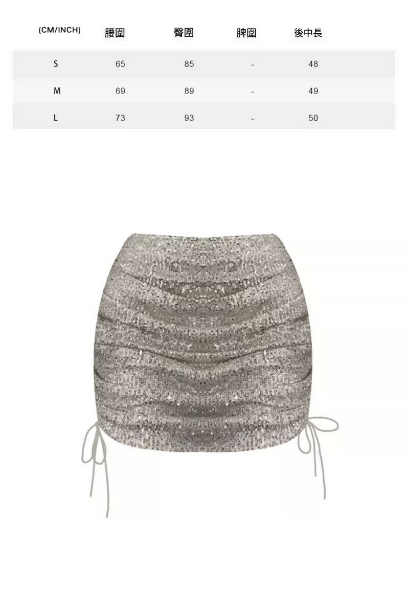 熱賣亮片縮褶抽繩半身裙(銀色 S碼)