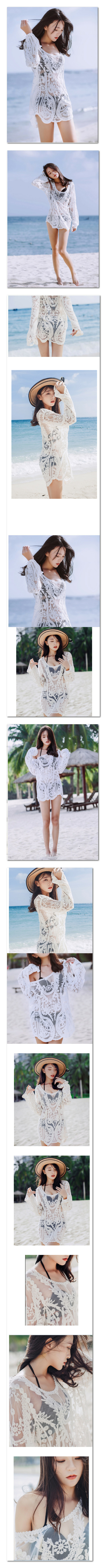 熱推比基尼罩衫泳衣薄外套鏤空防曬沙灘衣(白色)(均碼)