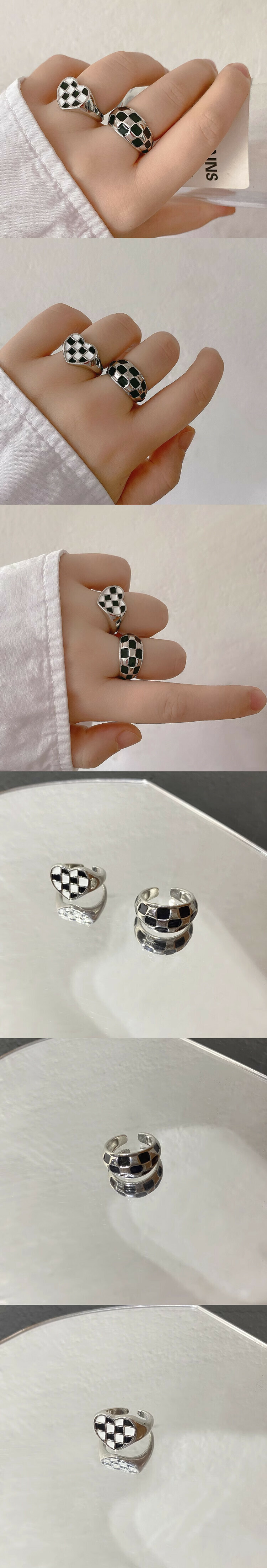黑白色棋盤格子開口戒指(一套)