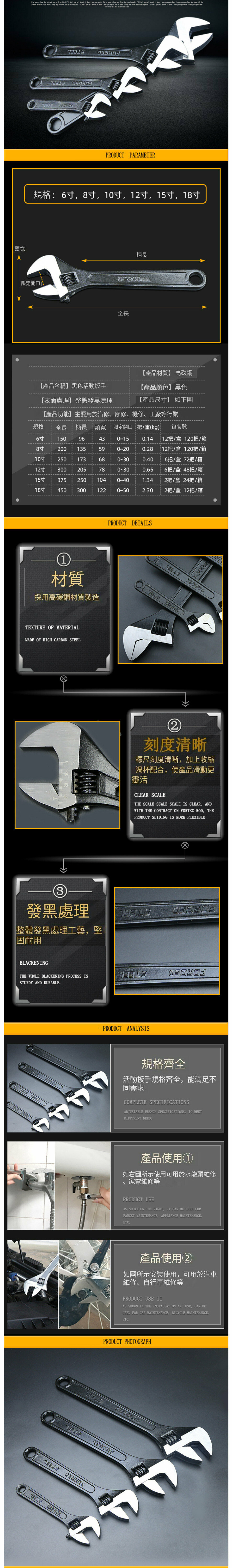 熱推發黑電鍍活口可調扳手(10寸黑活動扳手)