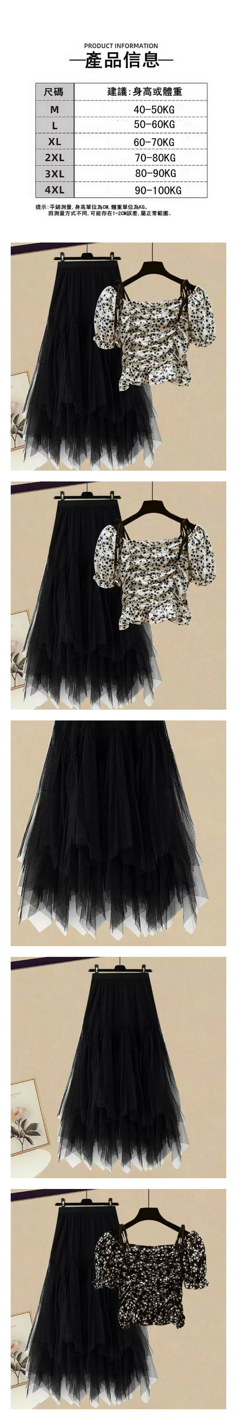 熱賣黑色不規則網紗半身裙+雪紡衫(黑色+杏色)(M-4XL碼) (下單後聯系客服確認尺碼)