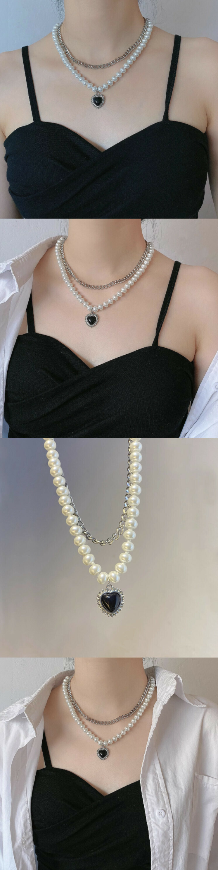 黑色金屬愛心雙層疊戴頸鏈