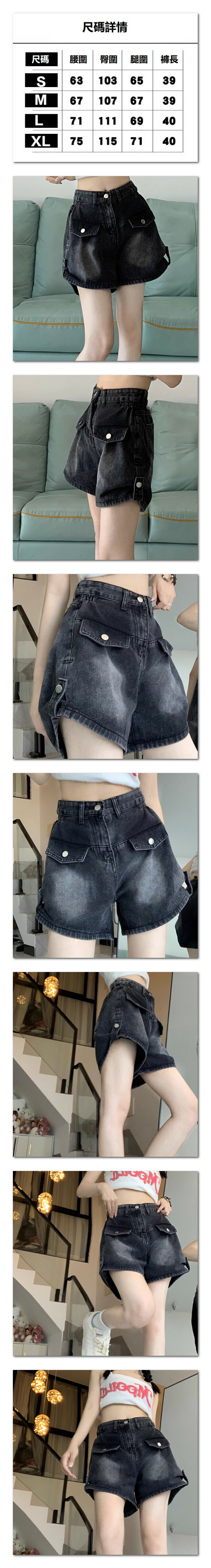 熱賣黑色復古闊腿牛仔短褲女夏裝(黑色【S_XL碼】(下單後聯繫客服確認發貨尺碼)】