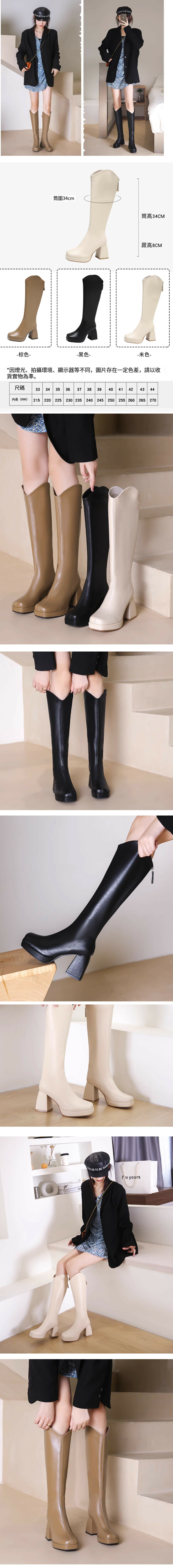 粗跟V口高跟長筒靴