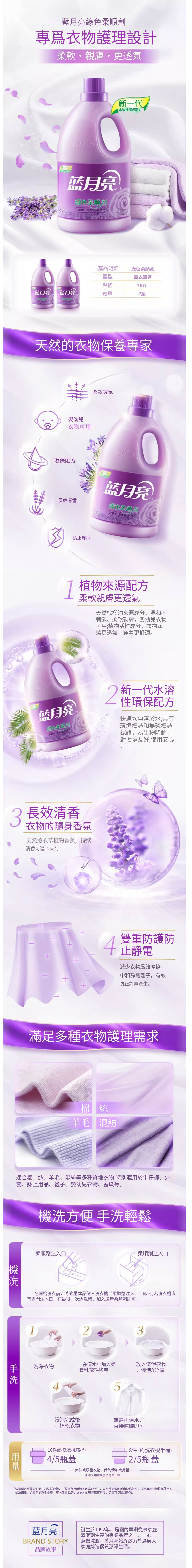 藍月亮--衣物柔順劑護理衣物留香除靜電【薰衣草香】3kgx1瓶裝