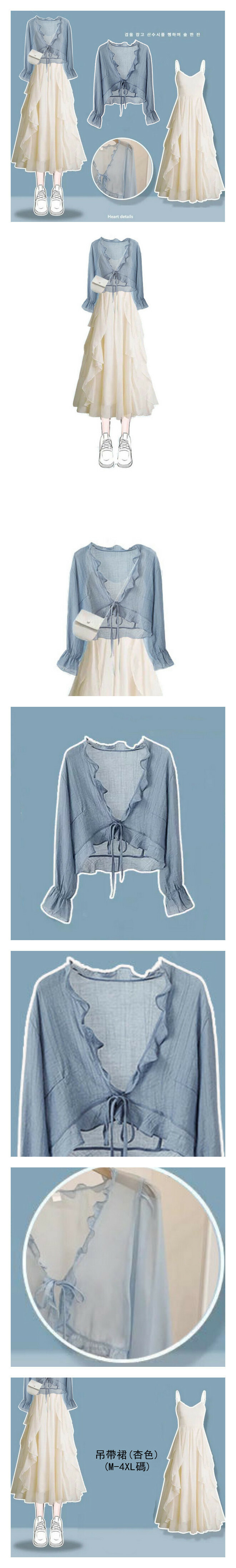 熱推藍色防曬衫+吊帶裙(杏色)(M-4XL碼) (下單後聯系客服確認尺碼)