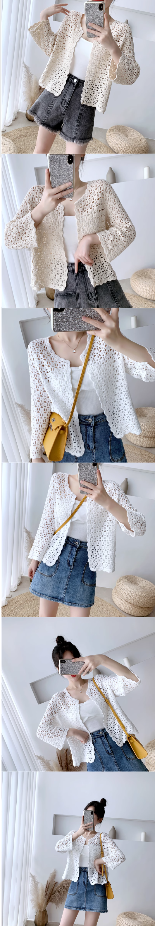 波西米亞披肩鏤空針織衫七分袖開衫