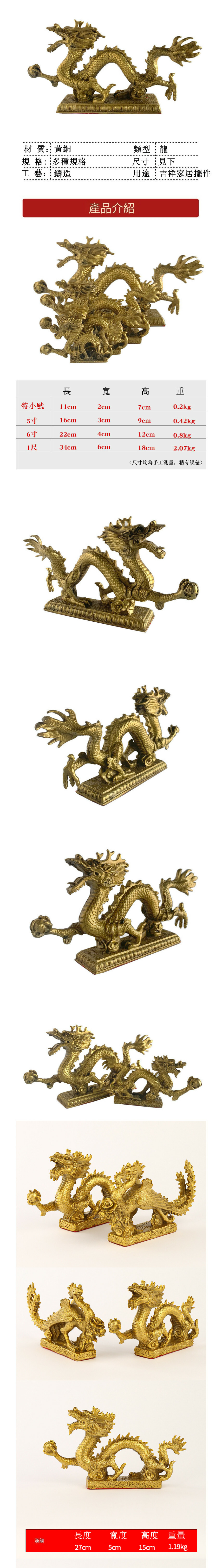 黃銅漢龍擺件--十二生肖龍擺設 風水擺飾【特小號漢龍 長11cm 寬2 高7 重0.2kg】1件