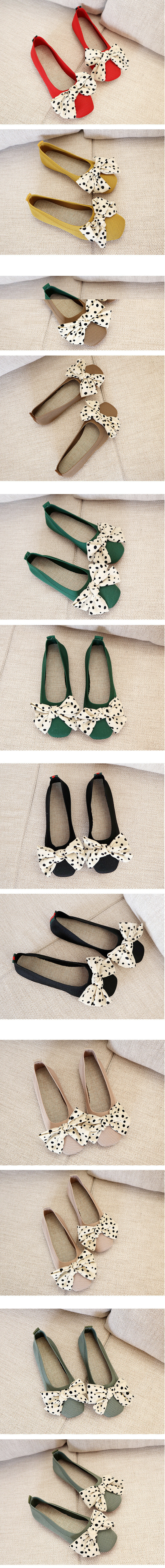 爆款蝴蝶結平底豆豆鞋【深綠色】尺碼【35碼-40碼】【下單後請聯絡客服確認發貨尺碼】