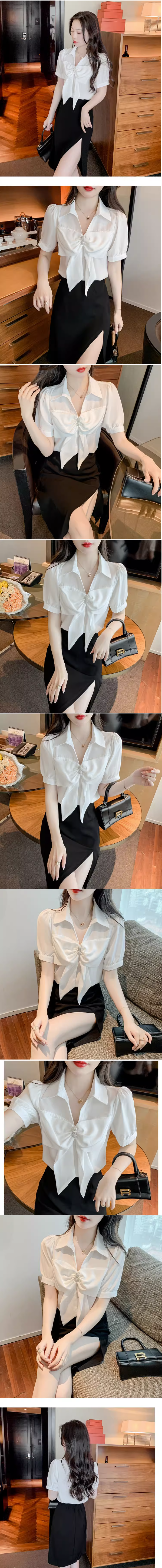 新款短袖蝴蝶結襯衣(粉色 尺碼:S-3XL )(下單後請聯絡客服確認發貨尺碼)
