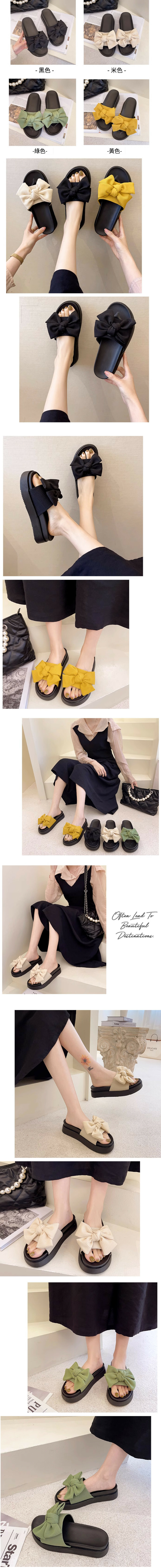 蝴蝶結厚底一字拖鞋