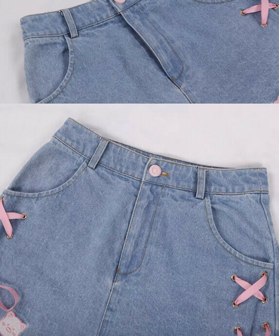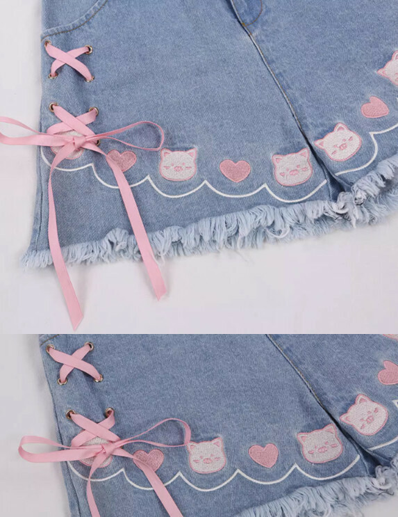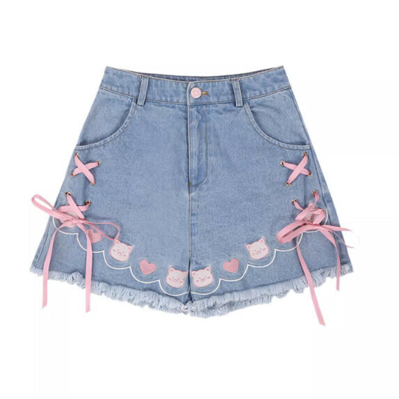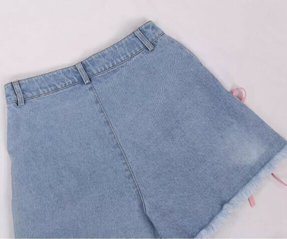 熱賣蝴蝶結綁帶牛仔闊腿短褲女夏裝(淺藍色【S_XL碼】(下單後聯繫客服確認發貨尺碼)】