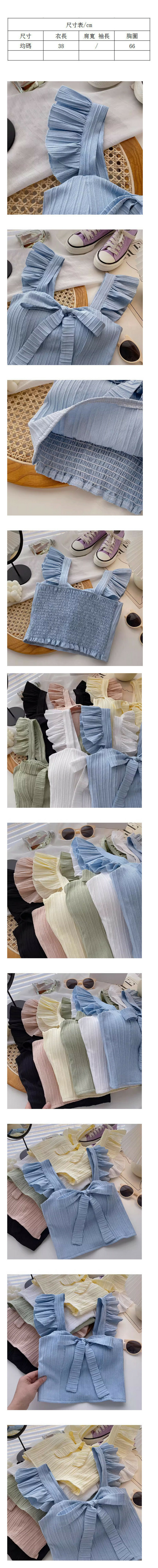 新款蝴蝶結繫帶小飛袖帶胸墊背心(藍色)【均碼】