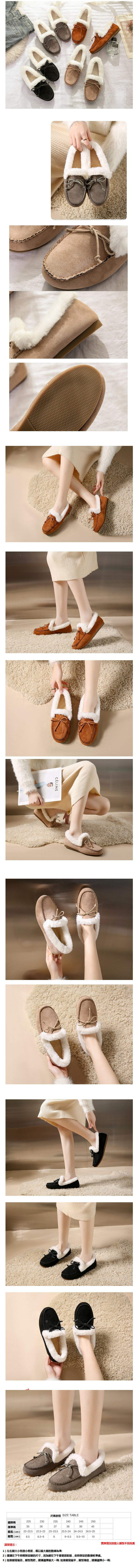 激抵蝴蝶結加絨平底鞋【米色】尺碼【35碼-43碼】【下單後請聯絡客服確認發貨尺碼】