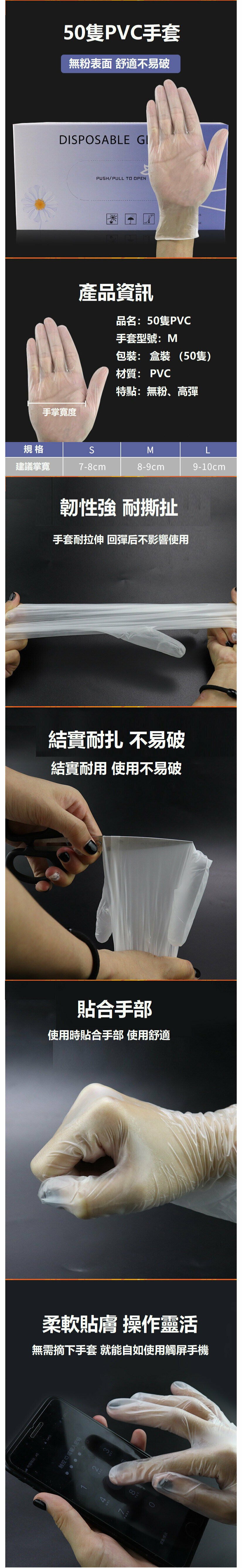 熱賣(盒裝50個M碼)一次性 PVC食品級手套 膠手套 一次性透明即棄手套 防護手套