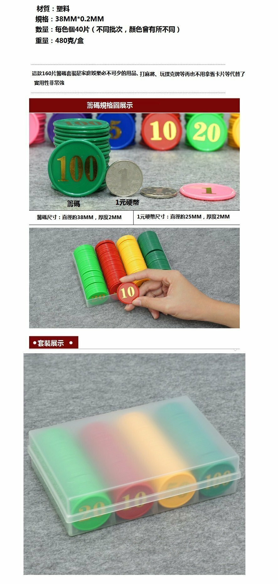 激抵盒裝彩色燙金籌碼(38mm*0.2mm)