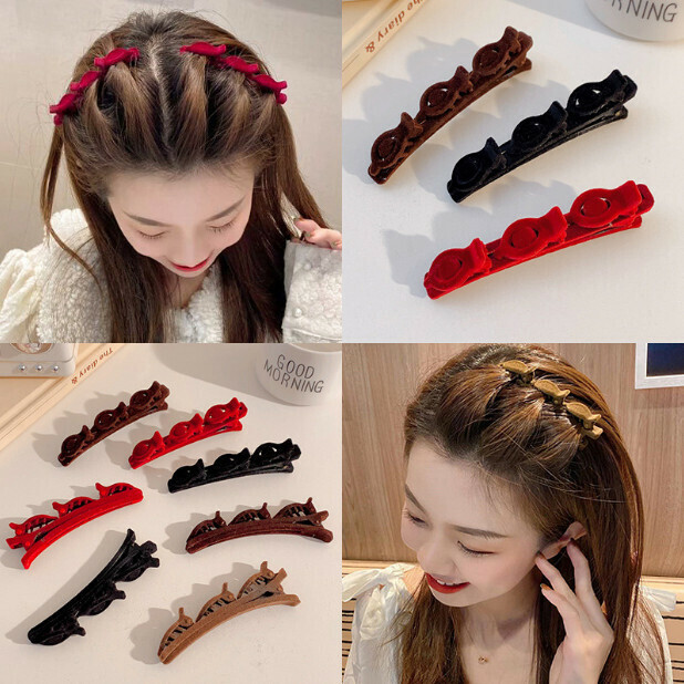 激抵編髮髮夾 劉海側邊髮卡 頭飾 髮飾(顏色:1#淺咖)