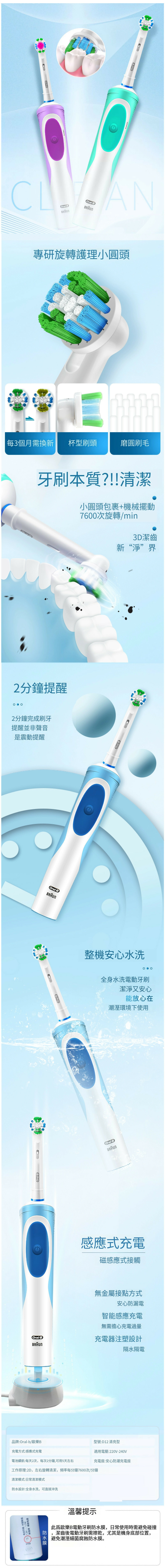 博朗OralB成人充電式牙刷(D12綠色手柄)