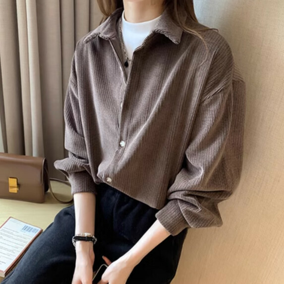 熱賣磨毛燈芯絨襯衫女秋冬裝(白色【S_XL碼】(下單後聯繫客服確認發貨尺碼)】