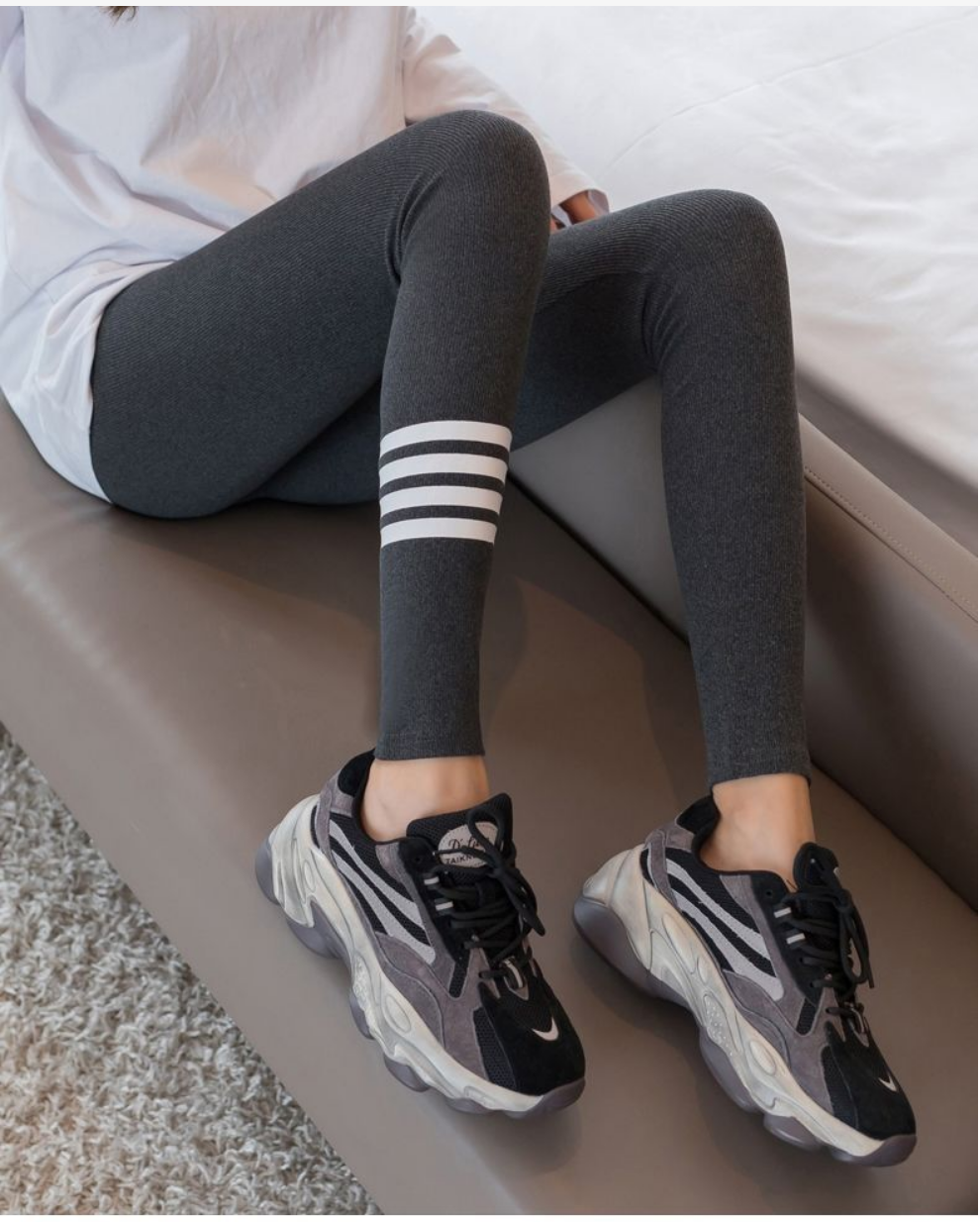 熱賣磨毛款四條槓螺紋緊身打底長褲(深灰色)(尺碼:小碼【80-125磅】/大碼【125-160磅】)(下單後聯絡客服確認發貨尺碼)