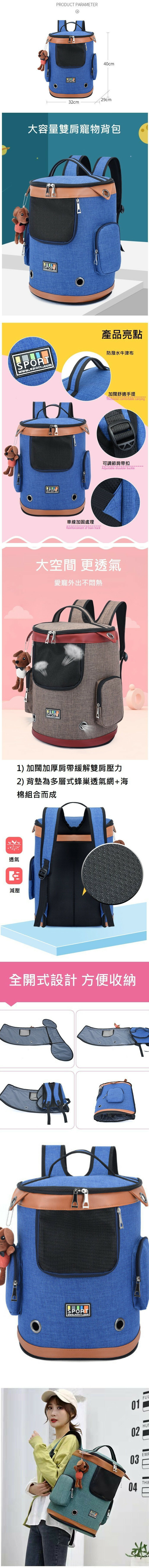 新款桶形大容量透氣雙肩寵物背包(紫色)