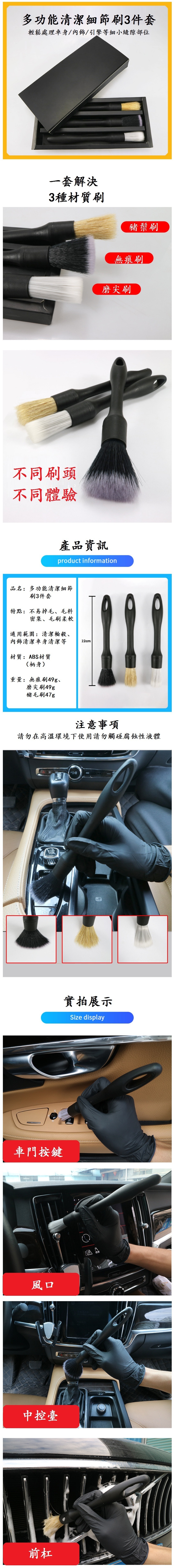 新款汽車細節刷 輪轂刷軟毛縫隙刷內飾清潔刷(3件刷子盒子裝)