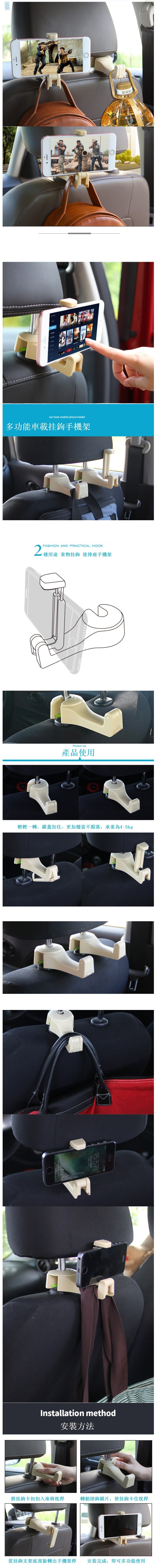 熱賣車載後座椅背掛鉤多功能手機掛鉤支架(灰色 6690C)