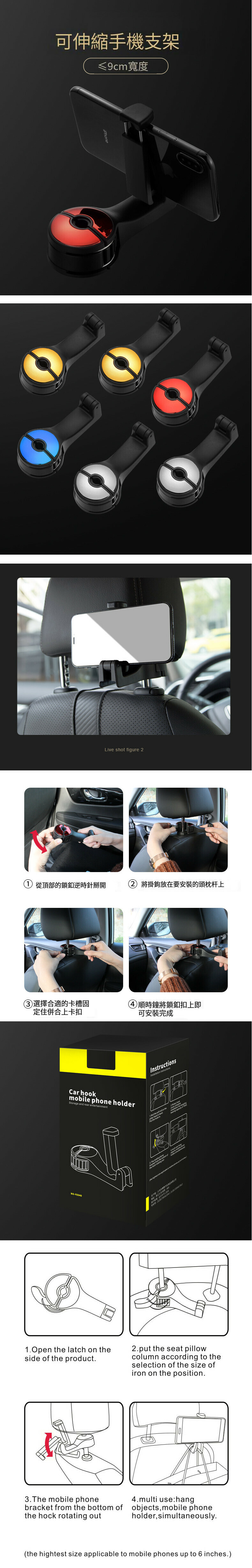 激抵汽車椅背掛鉤鎖扣式多功能手機支架【藍色】