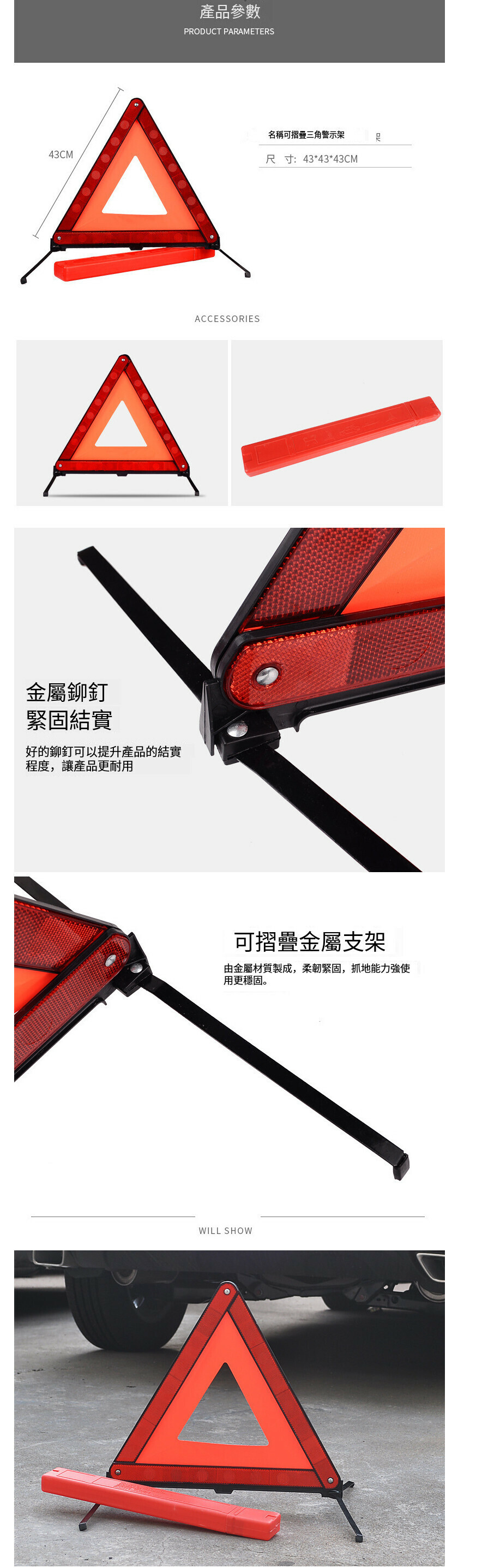 爆款汽車三角警示牌(尺寸:43*43*43CM)