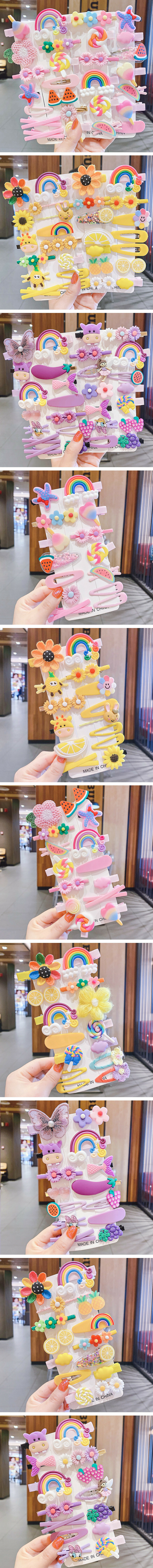 爆款卡裝髮夾髮飾女【2#粉色花朵+西瓜14件套(帶卡片)】