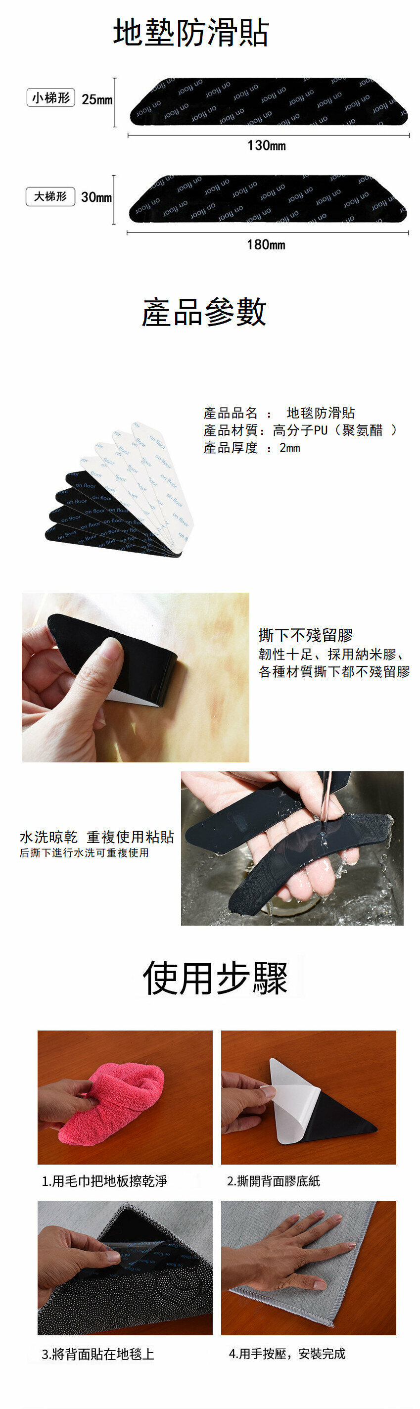 熱推地毯固定防滑貼 【小號梯形 黑色(8片裝)】