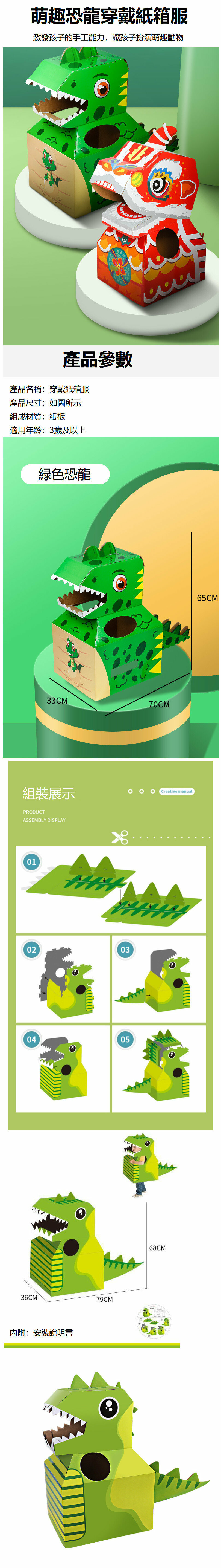 新款卡通動物可穿戴 DIY紙箱 [恐龍]
