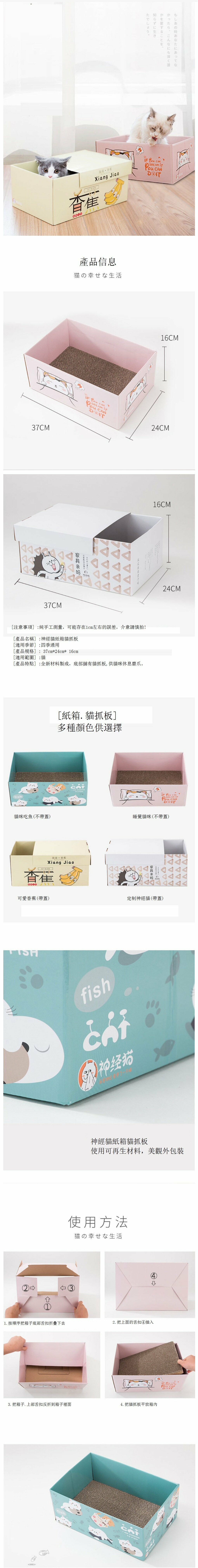 爆款卡通創意長方箱貓咪紙箱窩-37*26*16cm(紅色底 招財貓)