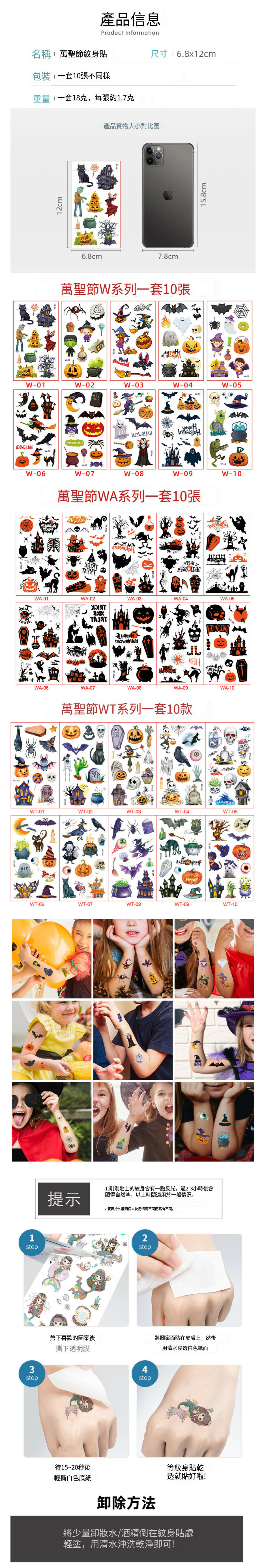 熱推卡通萬聖節紋身貼防水貼紙(萬聖節WT系列)