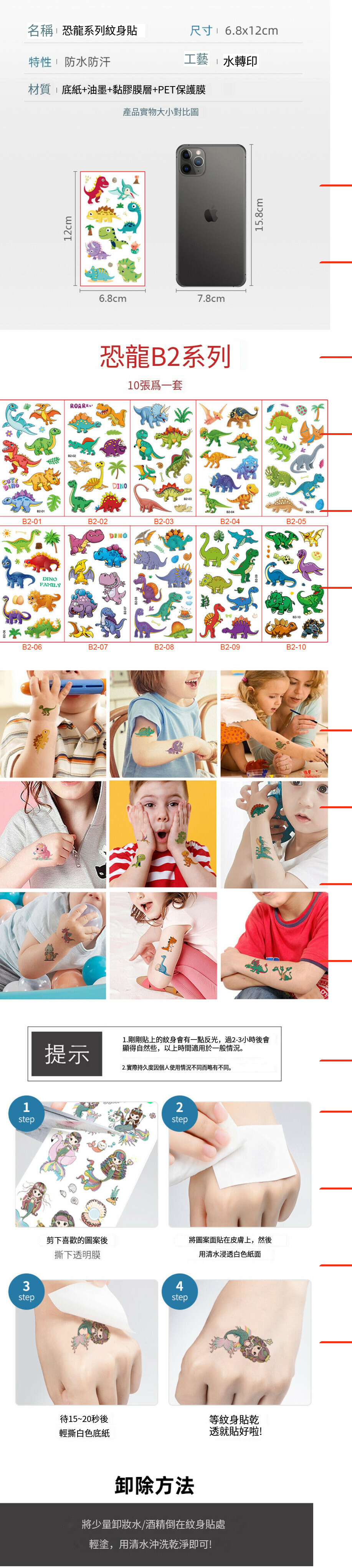 激抵卡通紋身貼節日派對貼紙(恐龍B2系列)